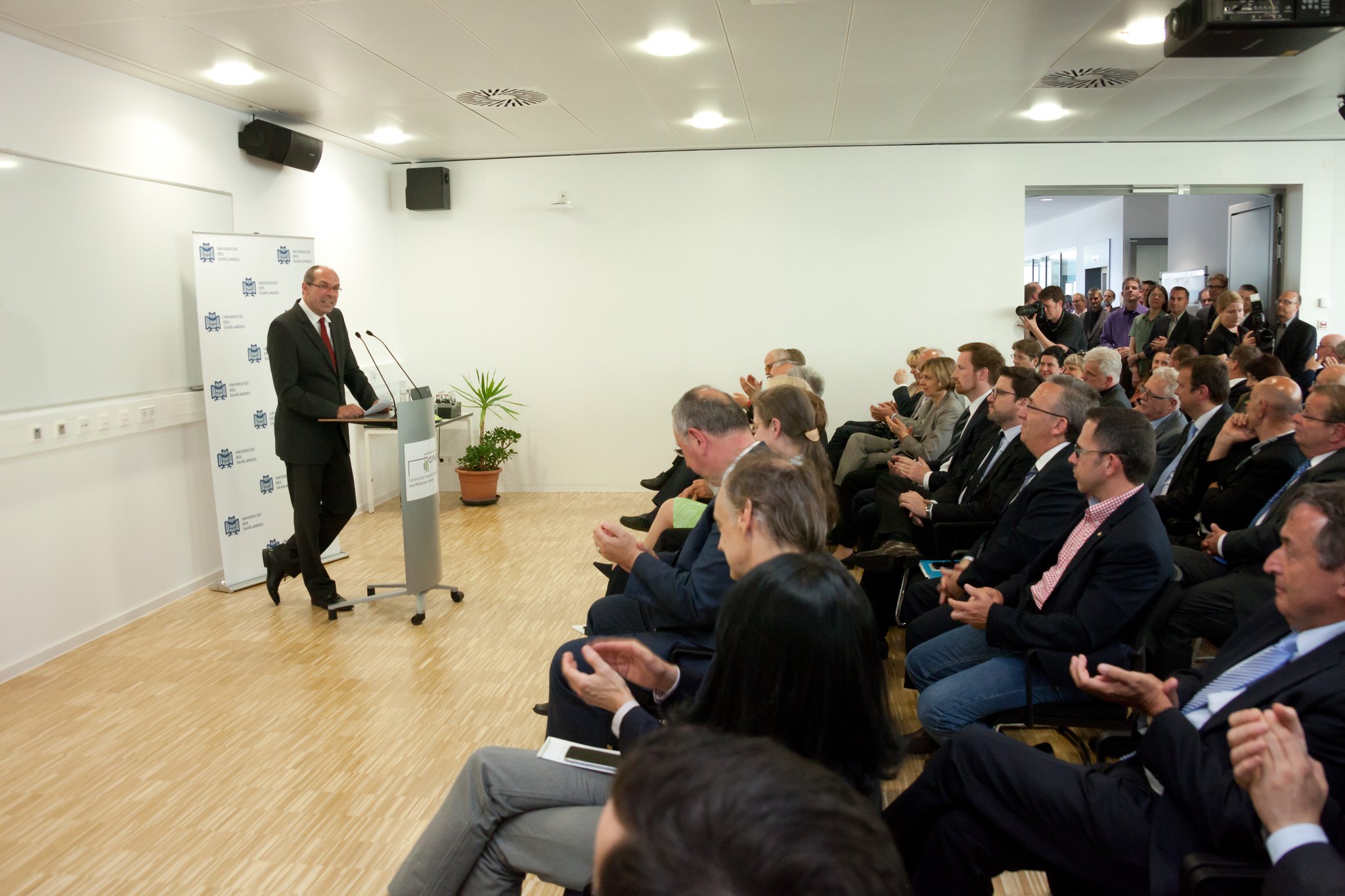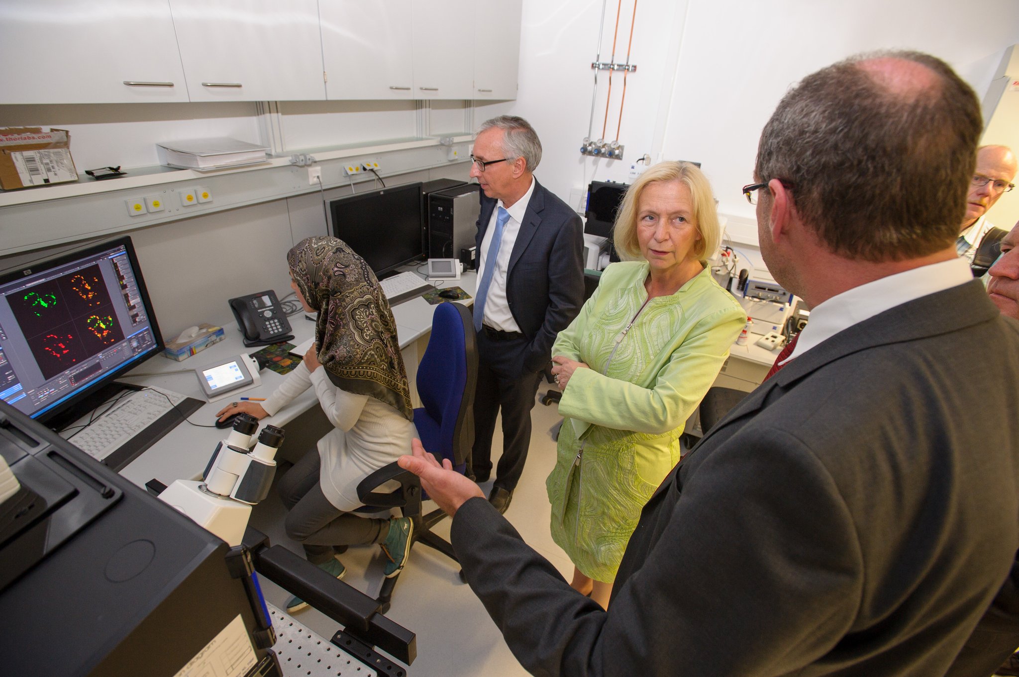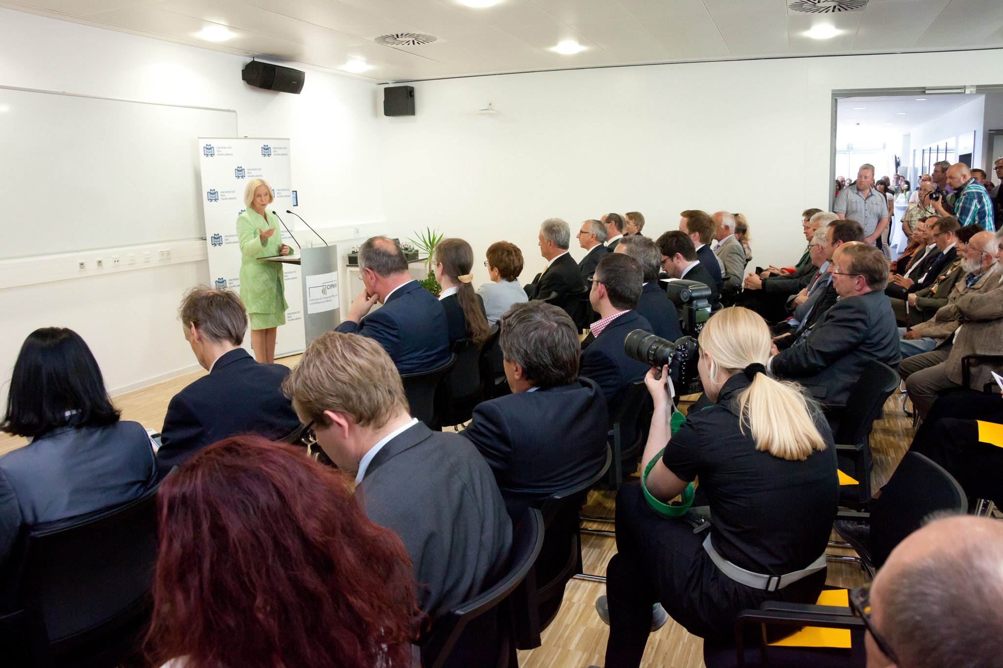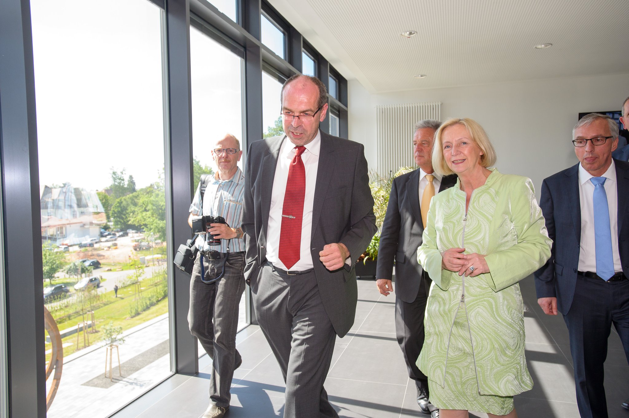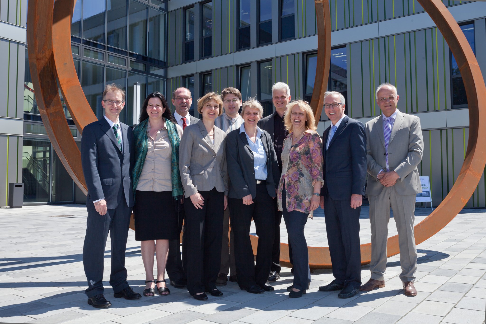 Inauguration CIPMM 2015: J. Wanka, Bundesministerin für Bildung und Forschung; A. Kramp-Karrenbauer, Ministerpräsidentin des Saarlandes; Prof. Dr. V. Linneweber, Präsident der Universität des Saarlandes; Prof. Dr. M. Menger, Dekan der Medizinischen Fakultät; CIPMM Gründungsdirektoren: Prof. Dr. Dr. F. Zufall und Prof. Dr. J. Rettig; und andere Gäste. (idw news).