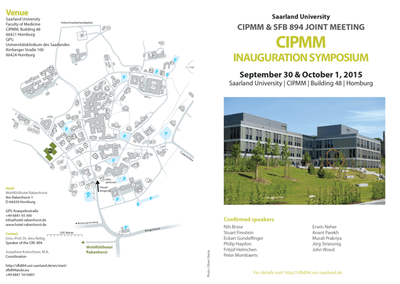Members of the CIPMM and the DFG funded collaborative research center (SFB894) organized a scientific symposium to celebrate the inauguration of the CIPMM at the Medical School of Saarland